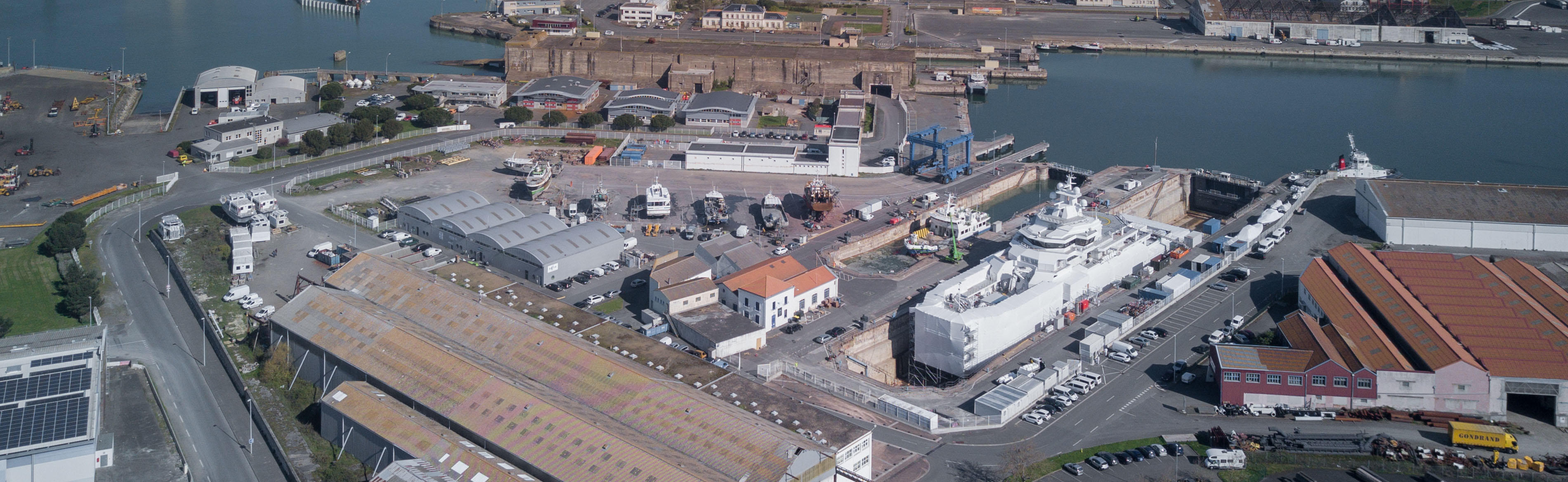 On the repair and shipbuilding site of Atlantic Port La rochelle, the dry dock N°1, 176 m length, is suitable for super and mega yachts refit.